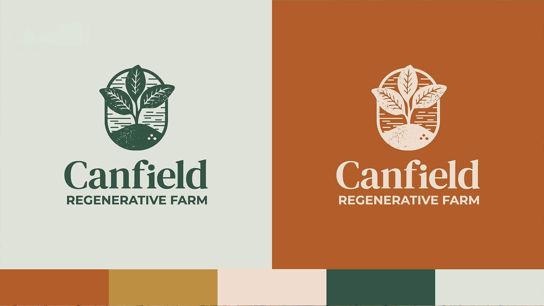 Canfield Regenerative Farm required a refreshed brand identity to reflect its growing focus on regenerative farming practices and providing organic food to the local community. The new identity was designed to capture the farm’s light-hearted, positive, and genuine character, while emphasizing its connection to land, process, and community. The final logo features a hand-drawn plant emerging from the soil, referencing the full cycle of growth—from nutrient-rich earth to harvest. This more rustic, organic illustration is paired with a refined wordmark, creating a balance between an approachable, grounded aesthetic and a sense of quality and care.