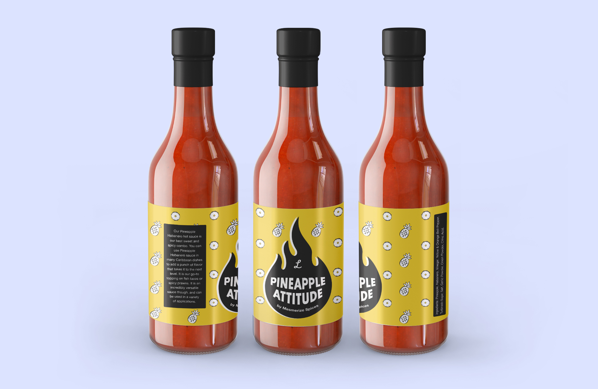 Professional chef turned spice connoisseur Christopher Mesmer, along with a handful of chef friends, looked to move beyond spices in their Mesmerize Spices company and created three delicious hot sauces. As new products, these sauces needed exciting branding and packaging to entice the eye of consumers. A bold and fun design was requested to bring a vibrant energy to this exciting product launch.