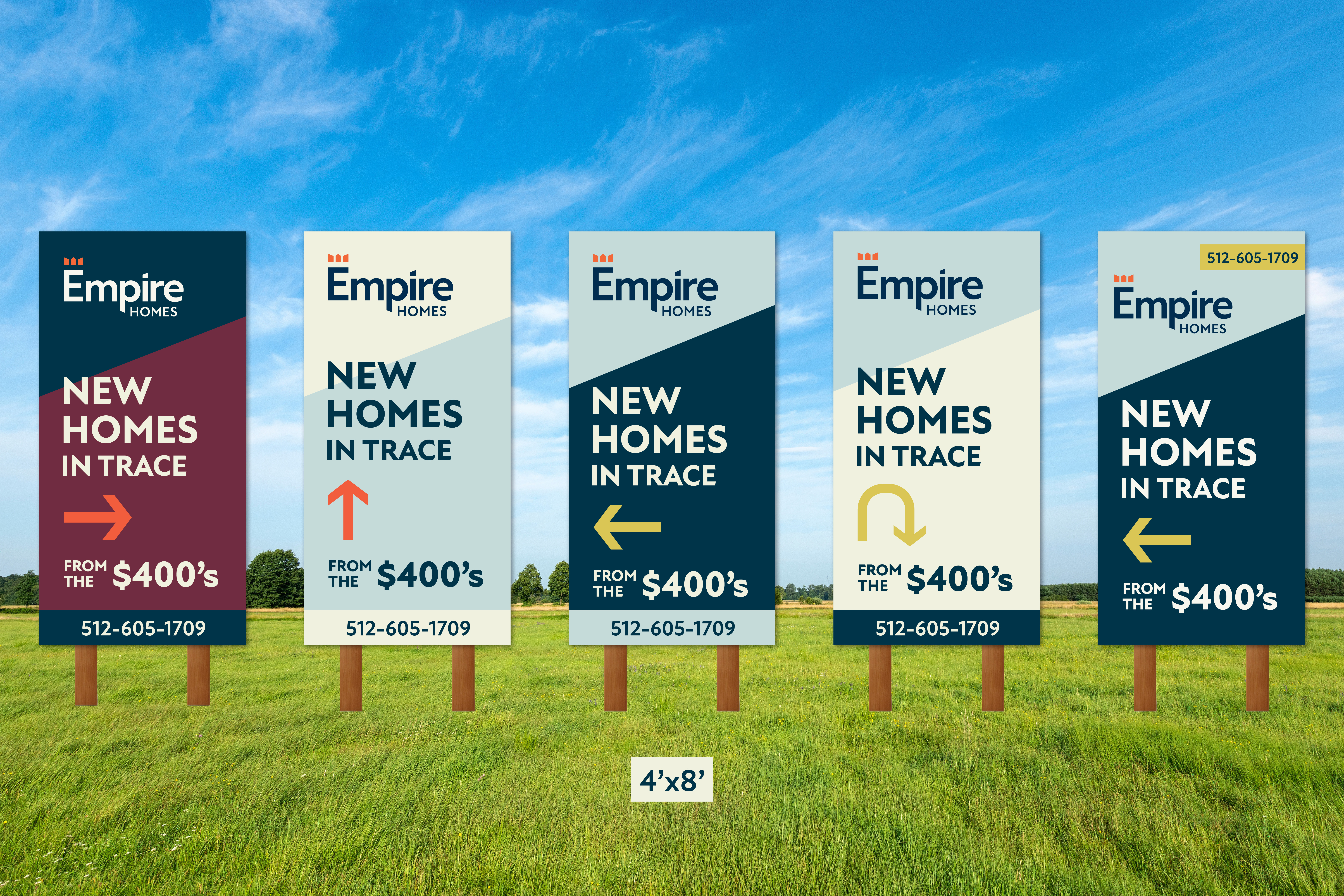 This body of work includes a range of signage designed to support pre-construction marketing and on-site navigation. The work balances strong visual hierarchy, readability, and brand consistency across varying formats and scales. Designed for real-world conditions, these signs prioritize clarity at a distance while maintaining a cohesive look and feel across the broader community.